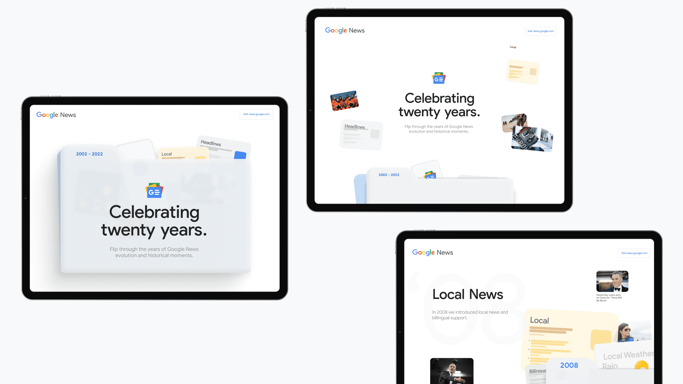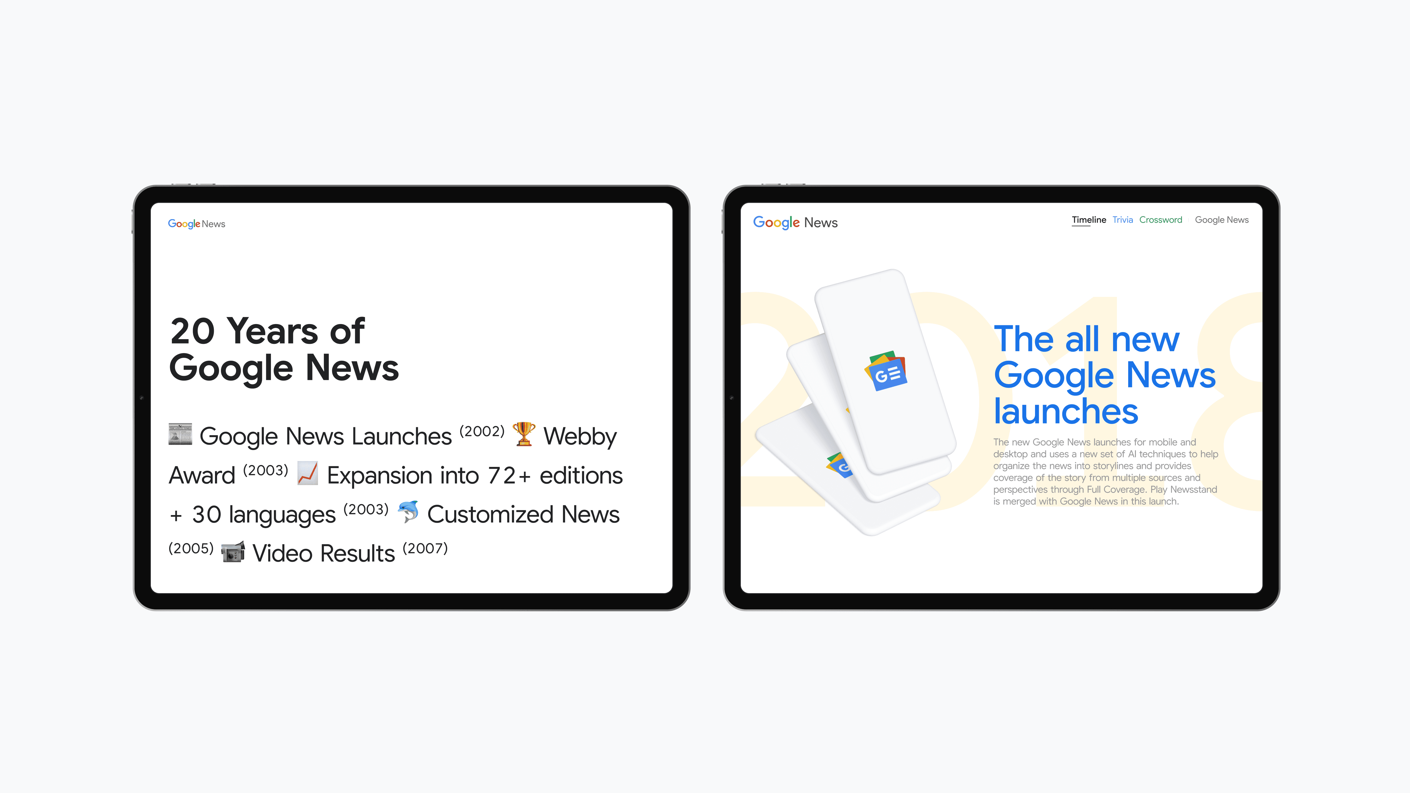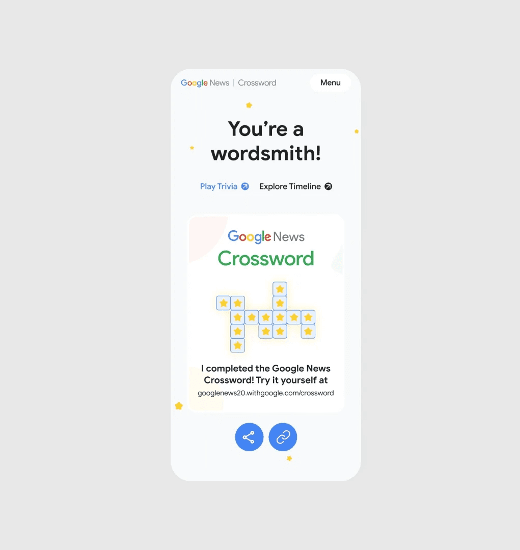 Bringing the world breaking news, we highlight two decades of innovation and milestones. Through an interactive timeline featuring product launches alongside major news events. Accompanying the timeline I designed a mini quiz and crossword puzzle that encouraged engagement and brand loyalty. The end result was a visually stunning and informative website that effectively communicated Google News' product launches and their commitment to innovation.