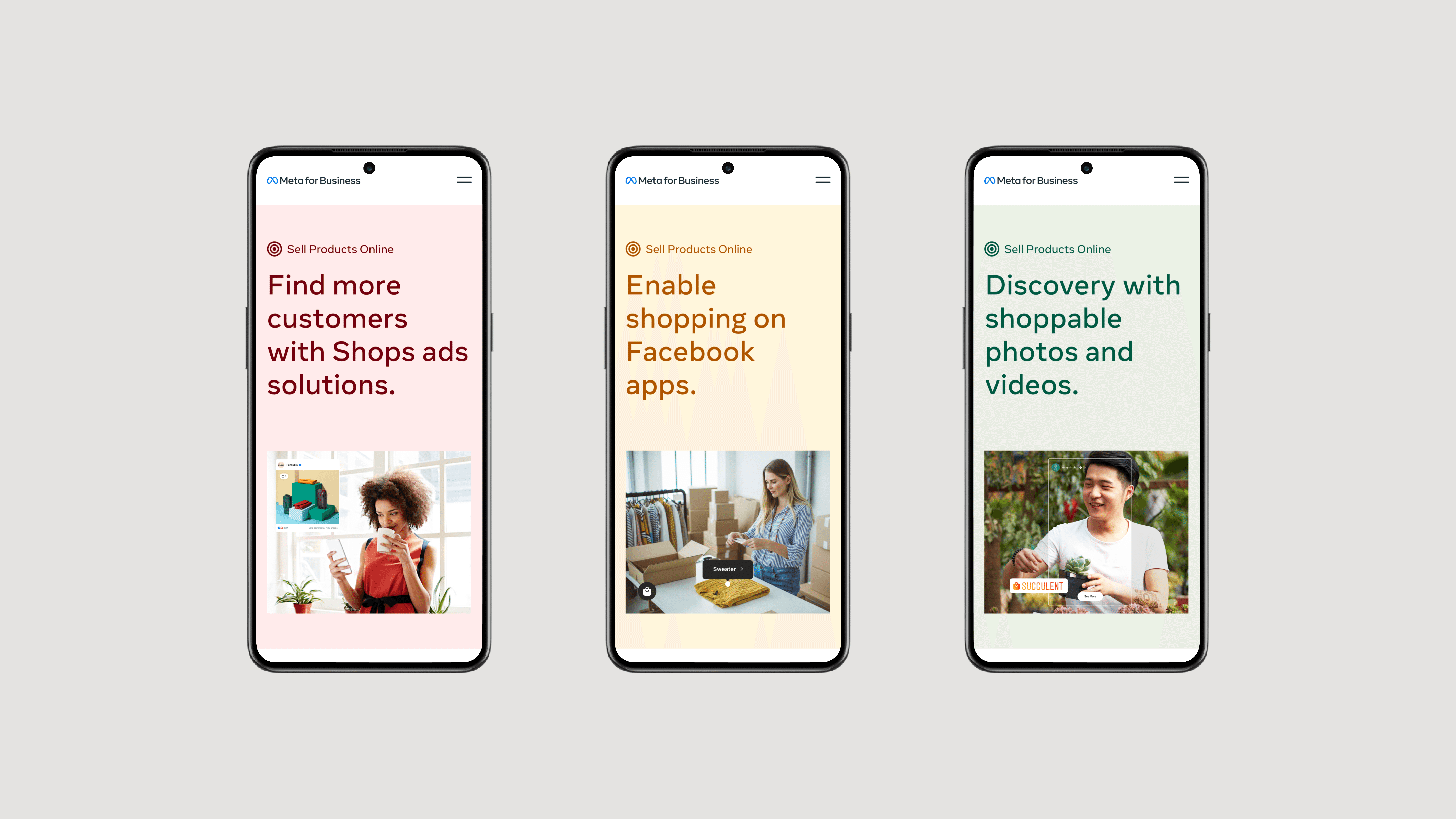 Rebranding a product that is used by more than 2 billion users is next level. Their main problem was a lack of consistent brand identiy. Brand assets they were using were generic and looked a lot like their competition. Meta for Business and our team at Stink Studios took on this challenge to roll out, pressure-test, and apply their new design system across new and existing business pages.